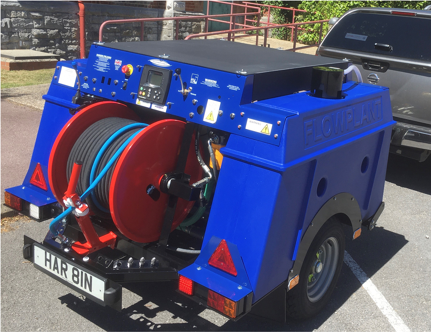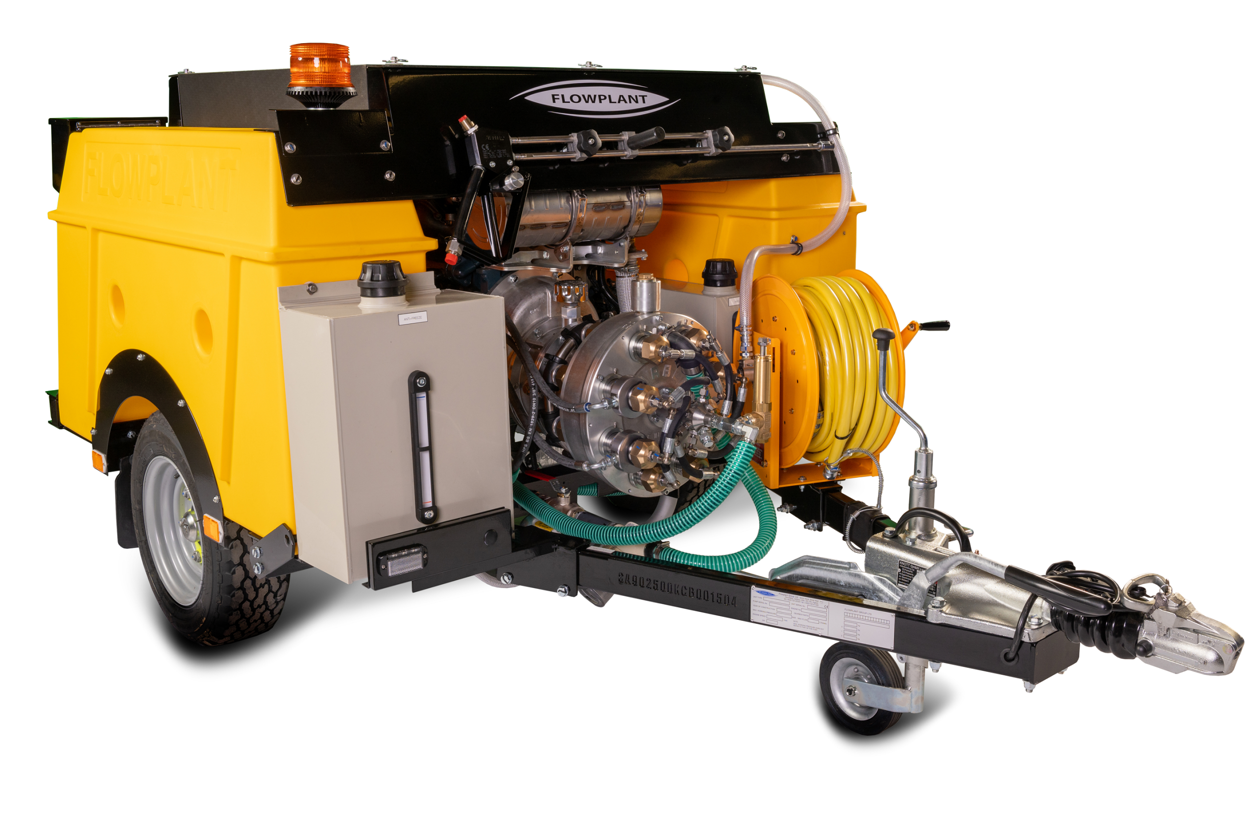 Večina modelov prikolic za čiščenje s curkom vode Flowplant je na voljo z 7-kanalnim radijskim daljinskim upravljalnikom. Zaradi tega je oprema primerna za »uporabo s strani ene osebe«, kar omogoča čiščenje s curkom vode do 100 metrov od vozila, s čimer se ne prihrani le stroškov obratovanja in dela, ampak se tudi zagotovi varnost vašega osebja pri opravljanju vsakodnevnih dejavnosti. Vse prikolice za čiščenje s curkom vode Flowplant imajo homologacijo VCA, kar zagotavlja, da je vaša oprema za čiščenje odtokov, nameščena na prikolici, varna in zakonita.